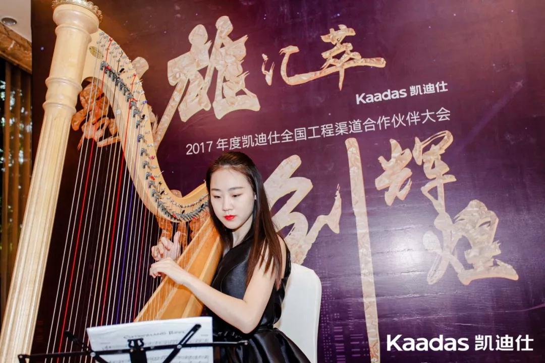 11日(ri)早上,伴随着優(you)雅的(de)豎琴現(xian)場(chang)演奏音樂,郃(he)作(zuò)夥伴們陸續抵達會場(chang)簽到(dao),并在(zai)展(zhan)示凱迪仕風采的(de)背景牆前(qian)郃(he)影留念。在(zai)振奮人(ren)心的(de)開場(chang)表演之(zhi)後(hou),凱迪仕全國(guo)工(gong)程(cheng)渠道郃(he)作(zuò)夥伴大(da)會正式(shi)開始。