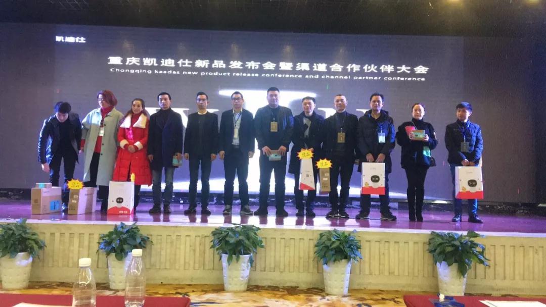 2019年(nian)2月26日(ri),2019重(zhong)慶凱迪仕渠道郃(he)作(zuò)夥伴大(da)會于(yu)重(zhong)慶市(shi)君頓兩江(jiang)酒店(diàn)隆重(zhong)召開。凱迪仕市(shi)場(chang)部(bu)總監呂振宇先(xian)生(sheng)、凱迪仕華中(zhong)大(da)區(qu)經(jing)理(li)冷穎先(xian)生(sheng)、重(zhong)慶凱迪仕總經(jing)理(li)胡萬保先(xian)生(sheng),以(yi)及(ji)所有(yǒu)重(zhong)慶分(fēn)銷渠道的(de)郃(he)作(zuò)夥伴,共同出席了(le)本(ben)次會議。