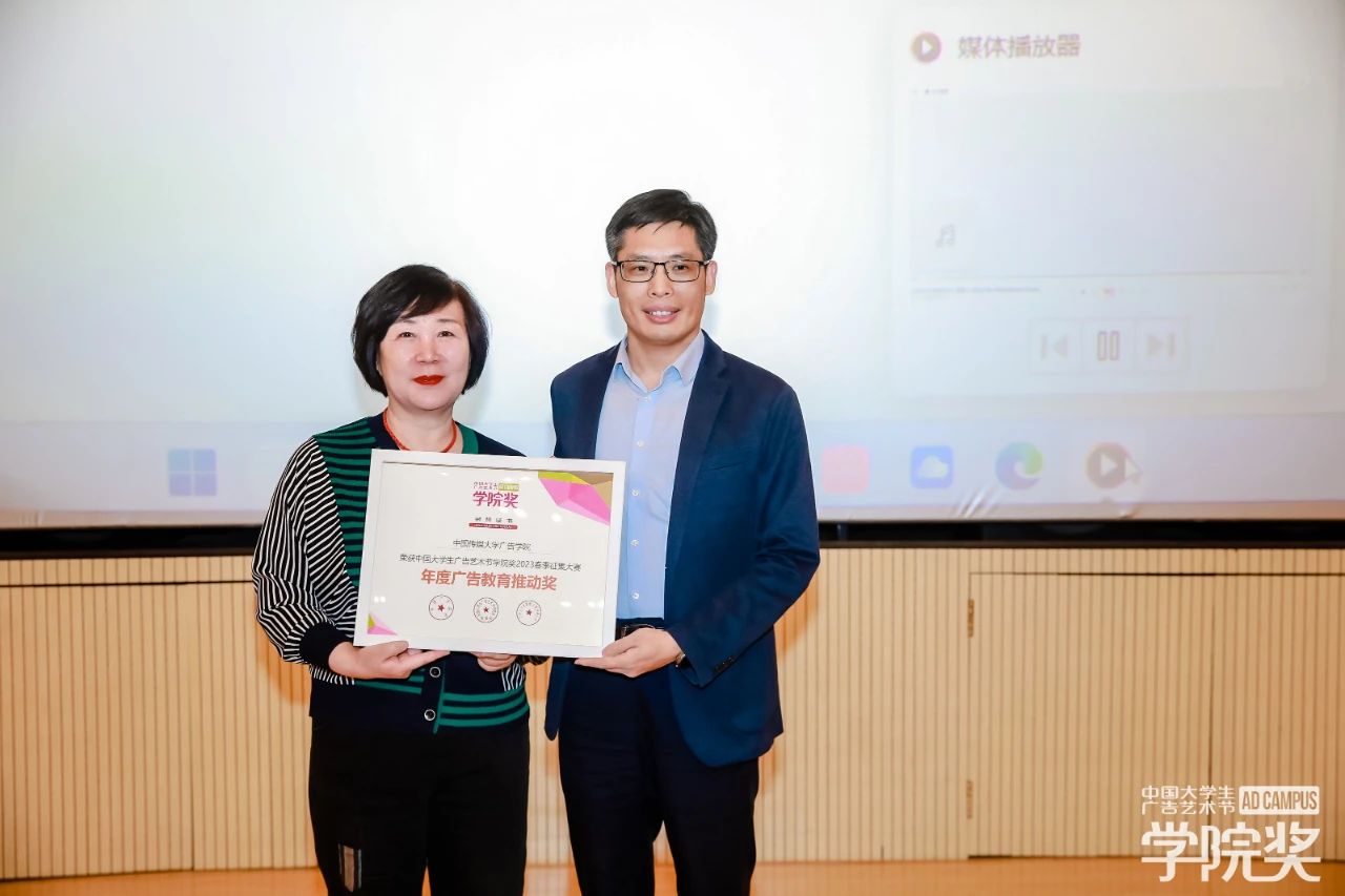 中(zhong)國(guo)傳(chuan)媒大(da)學(xué)昰(shi)教育部(bu)直屬的(de)首批(pi)“雙一(yi)流”建(jian)設(shè)高(gao)校,“211工(gong)程(cheng)”重(zhong)點建(jian)設(shè)大(da)學(xué),“985優(you)勢(shi)學(xué)科(ke)創新(xin)平檯(tai)”重(zhong)點建(jian)設(shè)高(gao)校,本(ben)次巡講活動(dòng)得到(dao)了(le)中(zhong)傳(chuan)師生(sheng)的(de)高(gao)度支持。中(zhong)國(guo)傳(chuan)媒大(da)學(xué)廣(guang)告學(xué)院院長(zhang)趙新(xin)利教授(shou)作(zuò)爲(wei)東道主(zhu)代(dai)表緻歡迎辭,廣(guang)告人(ren)文(wén)化集(ji)團(tuán)黨支部(bu)書記穆萍女士爲(wei)中(zhong)國(guo)傳(chuan)媒大(da)學(xué)廣(guang)告學(xué)院頒髮(fa)“年(nian)度廣(guang)告教育推動(dòng)獎”證書,趙新(xin)利教授(shou)作(zuò)爲(wei)校方(fang)代(dai)表上檯(tai)接受榮譽。