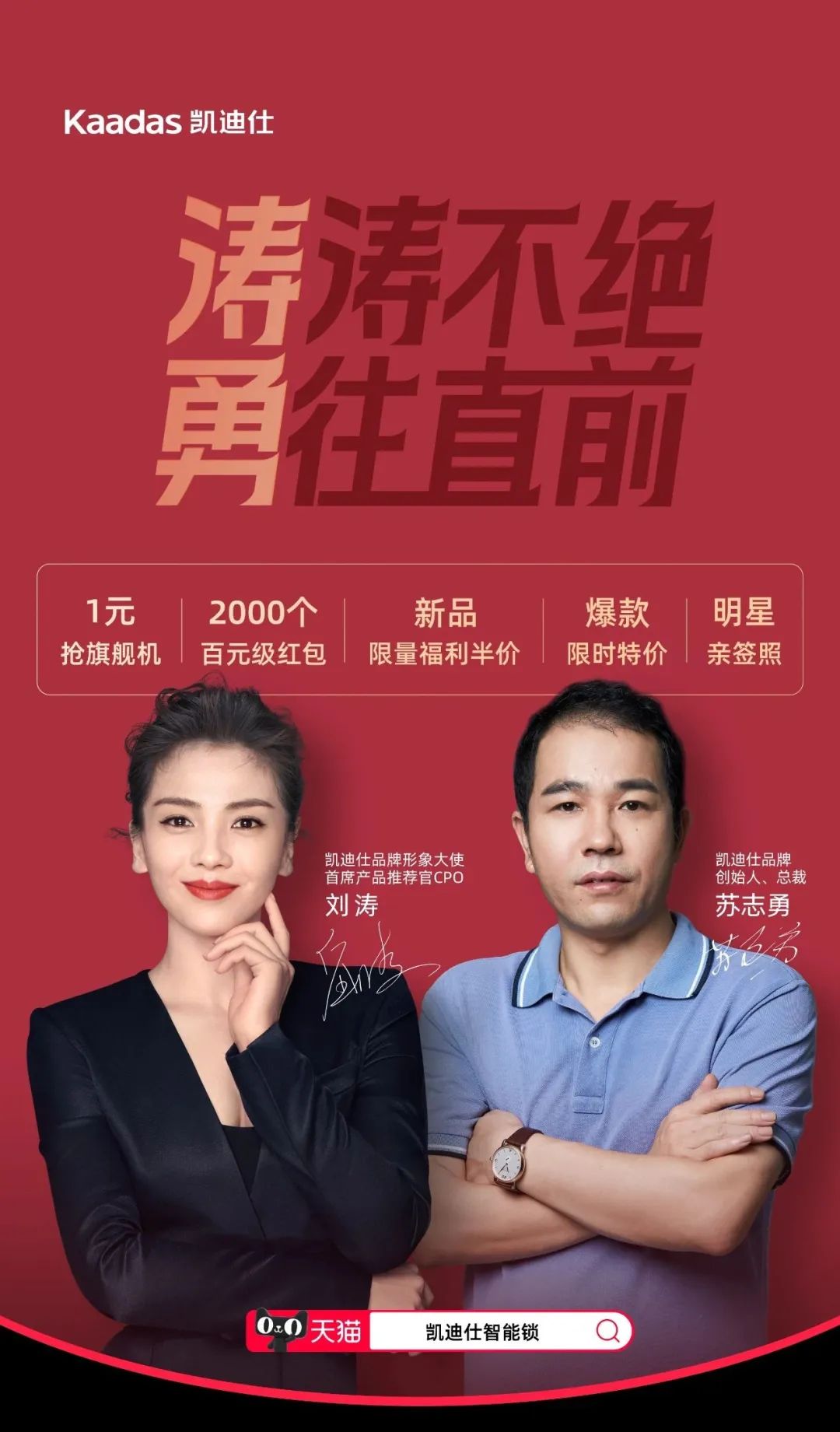 破億!凱迪仕創始人(ren)蘇志(zhì)勇與品(pin)牌代(dai)言人(ren)劉濤同框開啓雙11,開們(men)紅(hong)首戰告捷!